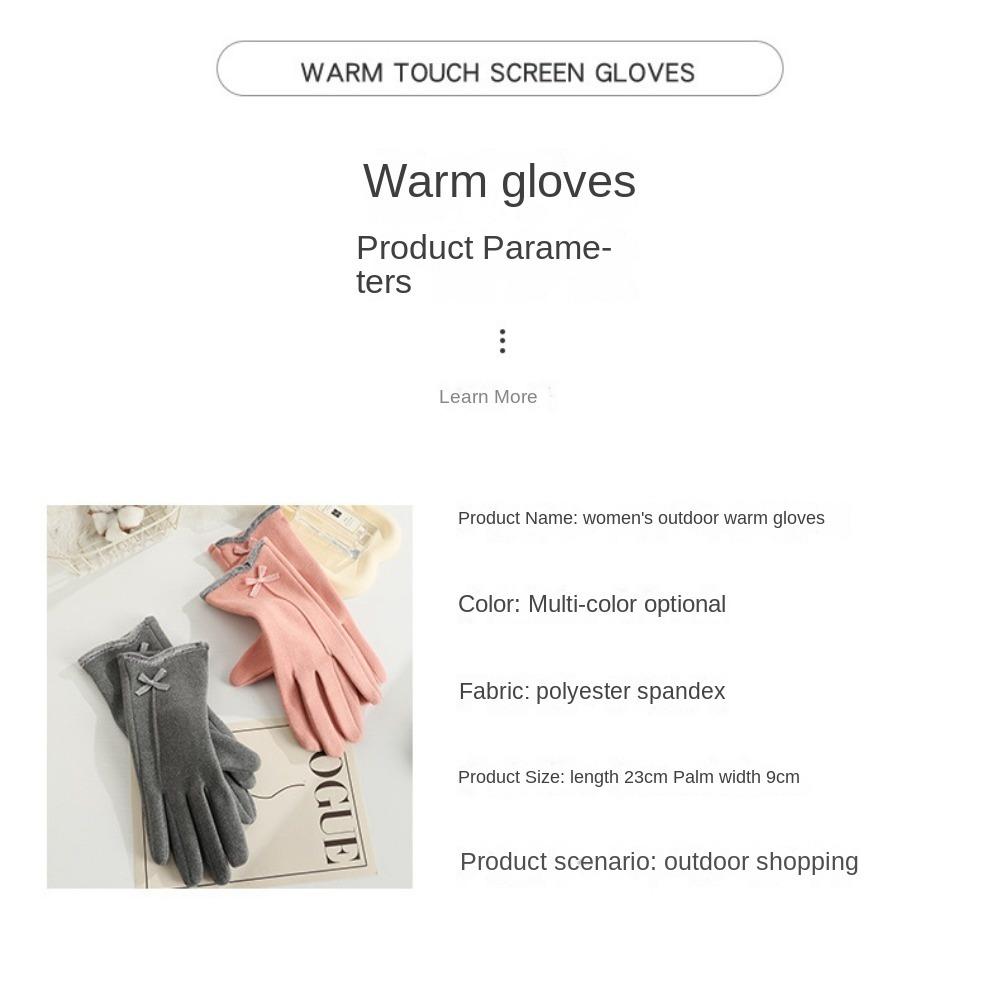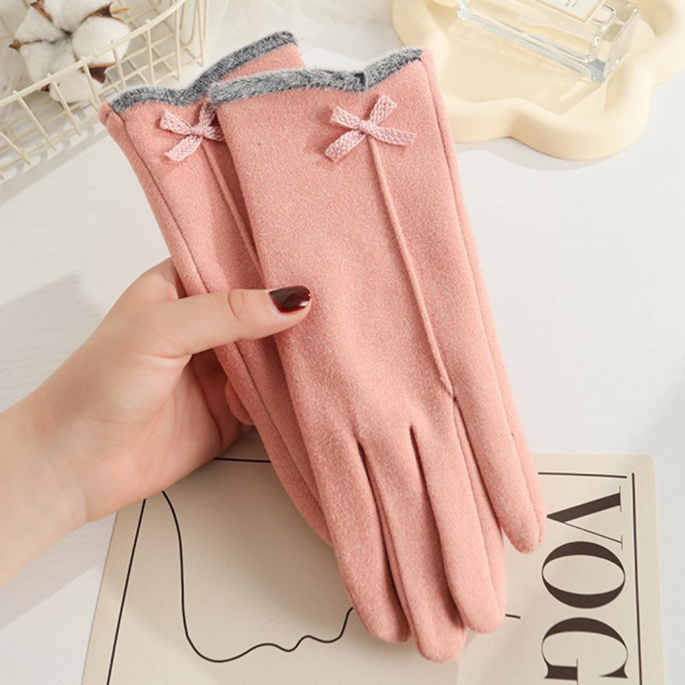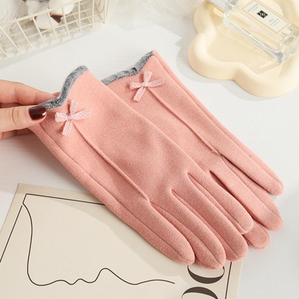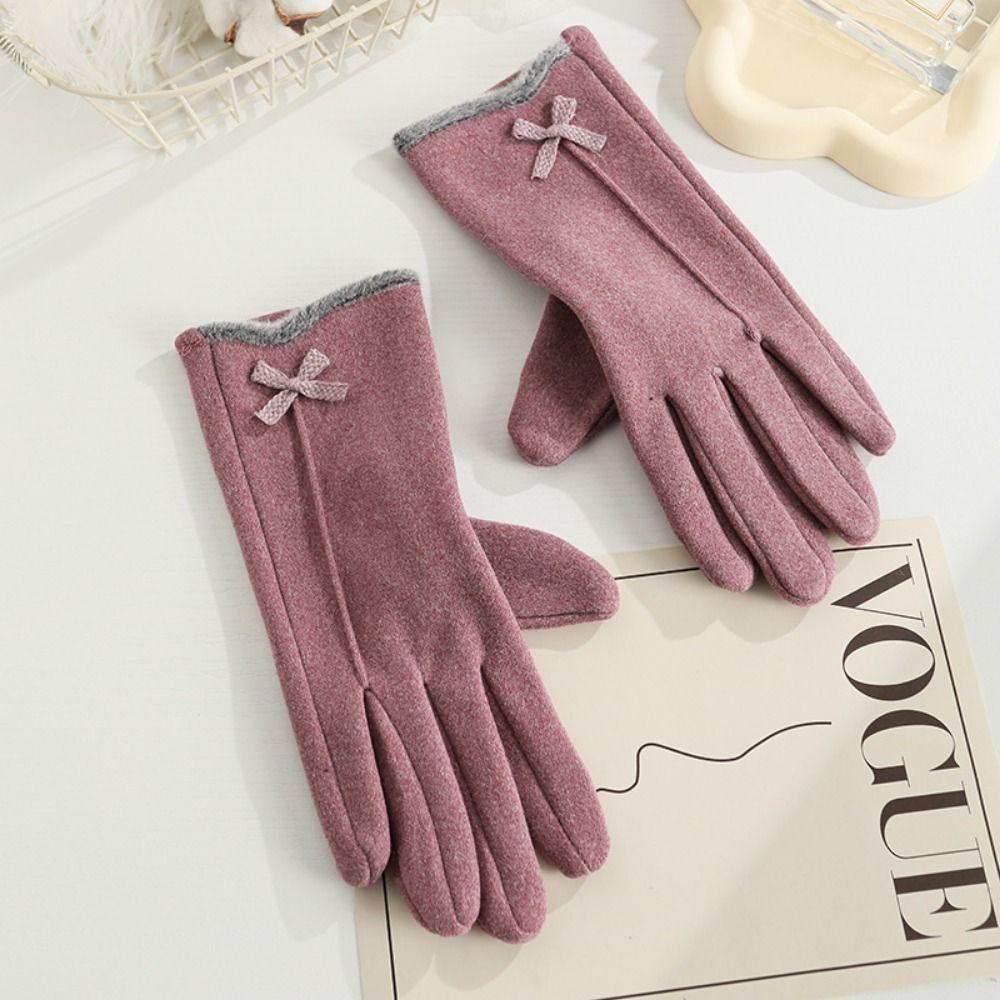 Перчатки для сенсорных экранов из кроличьего бархата, теплые перчатки с бантом по бокам, перчатки для пальцев, осень и зима