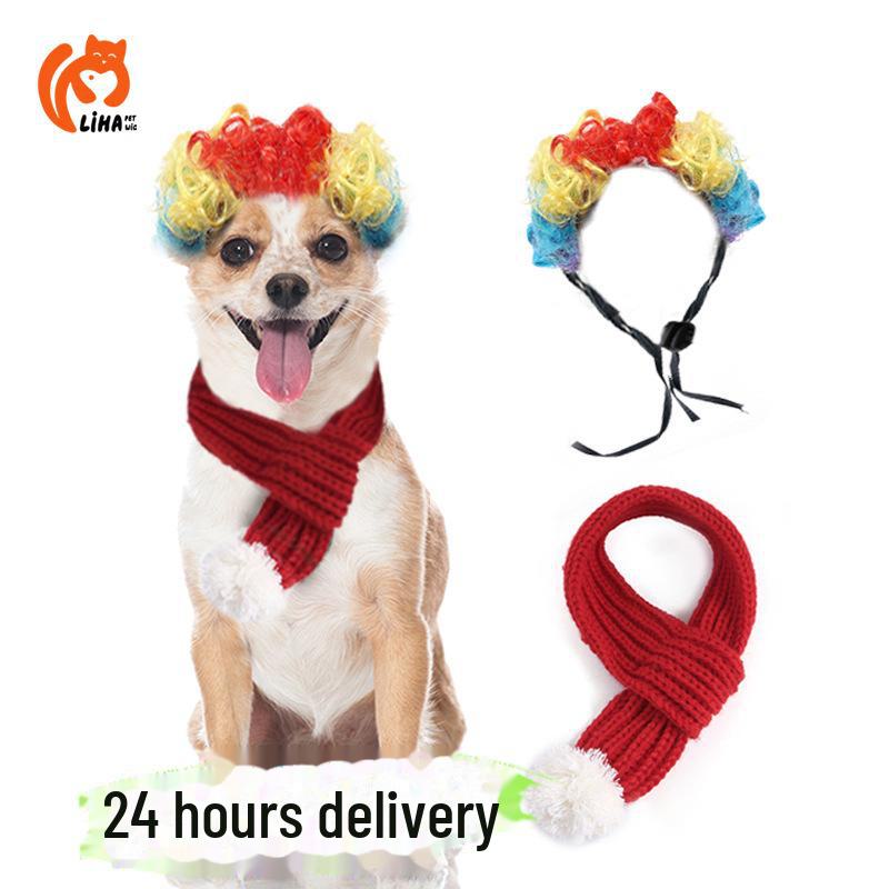 Рождественский вязаный шарф для питомцев и парик с героями мультфильмов, аксессуары для волос для кошек и собак