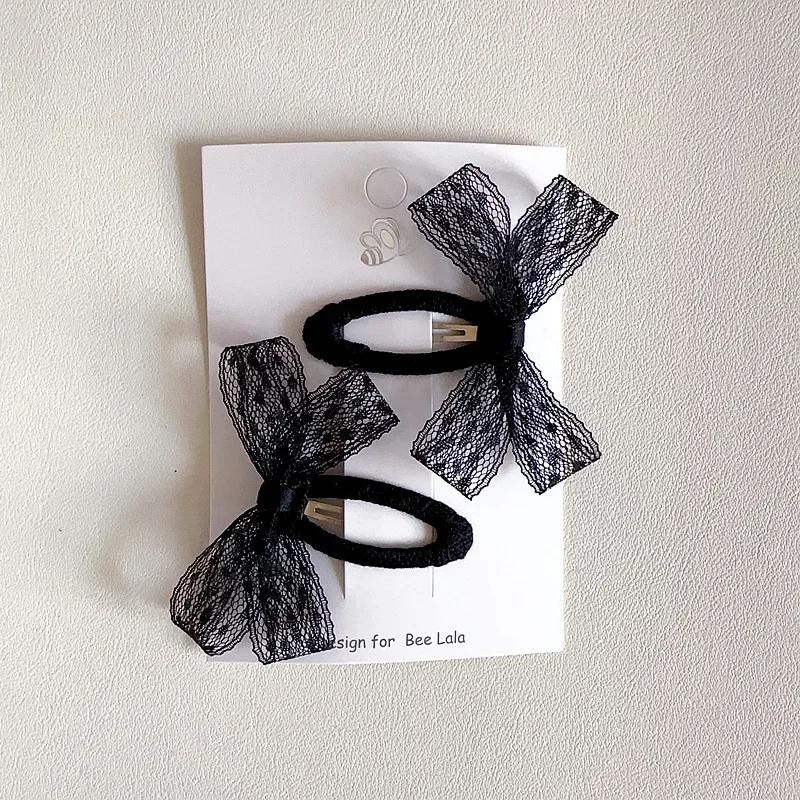2 шт., черные элегантные заколки для волос принцессы для детей, ретро-кружевной бант для малышей, милые головные уборы, аксессуары для волос