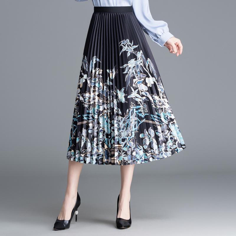 Юбка на груди женская летняя плиссированная высококачественная маятниковая печатная длинная юбка a-word женская драпировка женская тонкая юбка-зонтик куртка