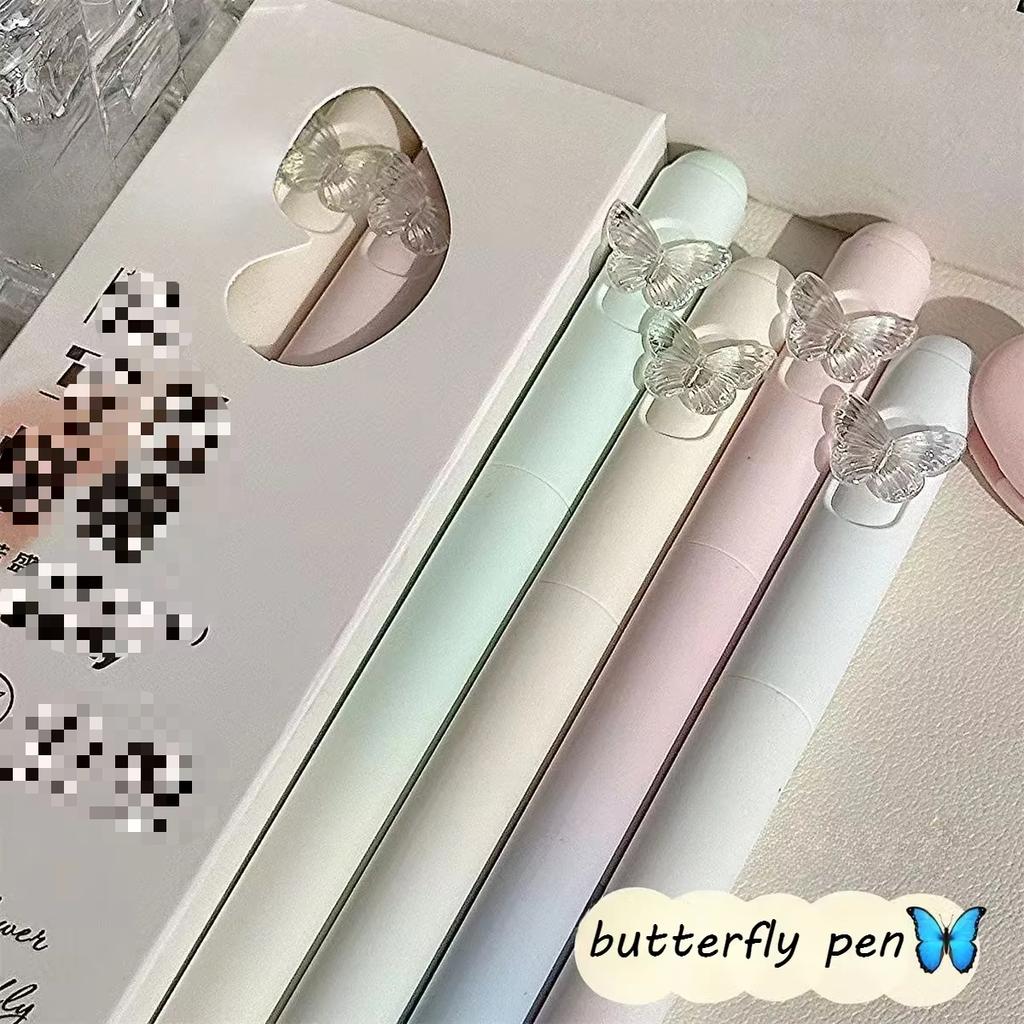 4 шт. INS эстетическая градиентная гелевая ручка с бабочкой для декора, милые девушки, журнал для записей, ручка для экзамена, кавайные канцелярские принадлежности для школы
