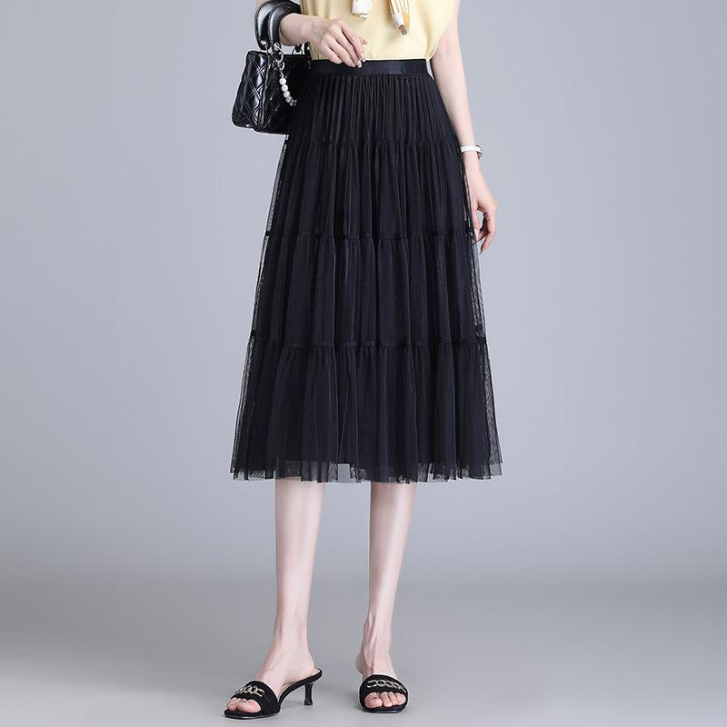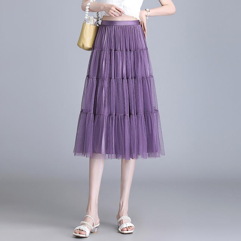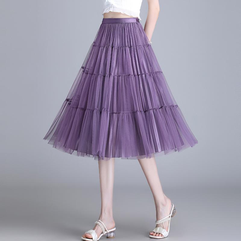Фиолетовая юбка 2024 года с сетчатой юбкой-плиссе с обеих сторон, женская летняя черная юбка-солнце средней и длинной длины с надписью A-word