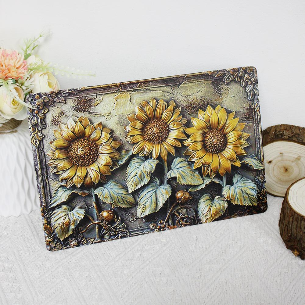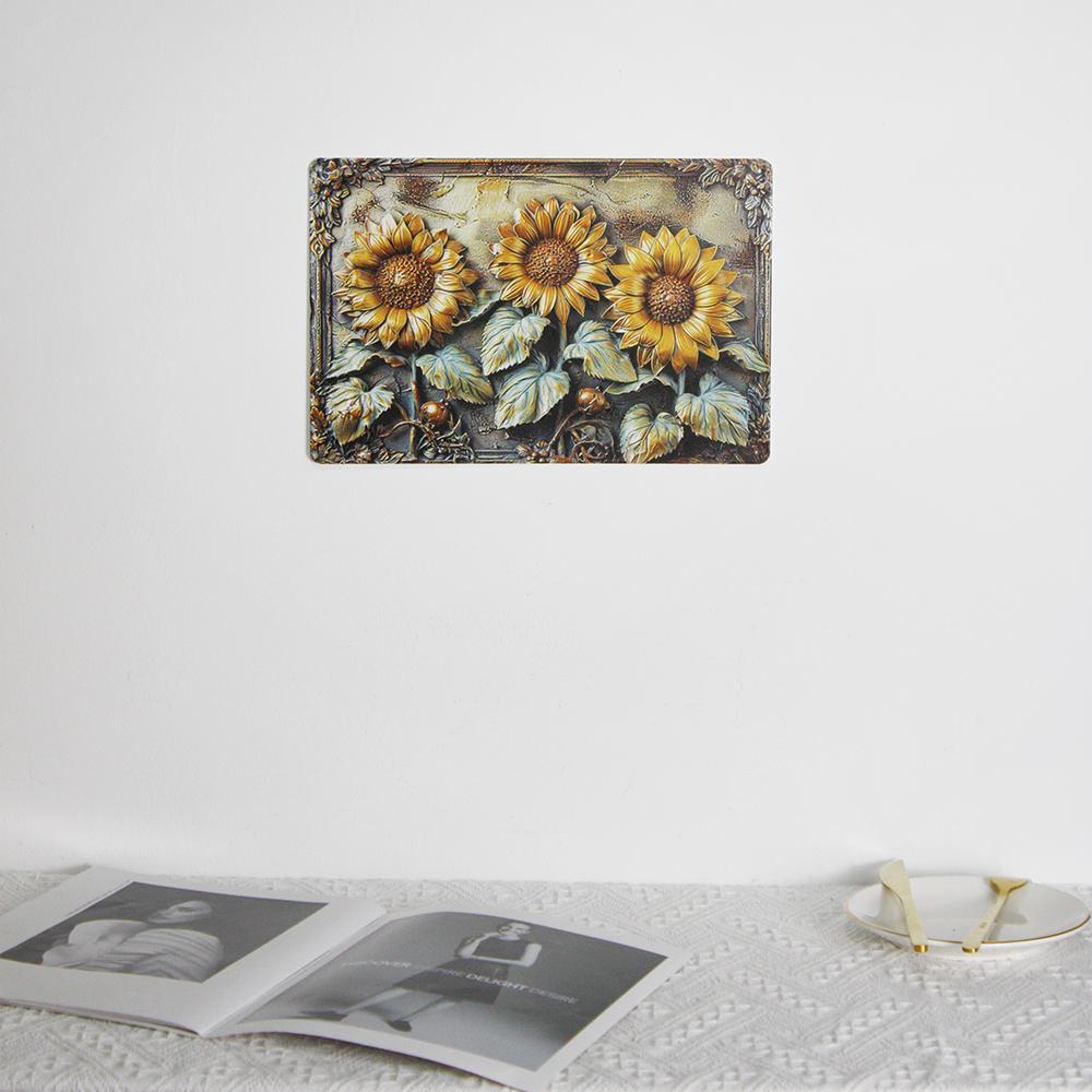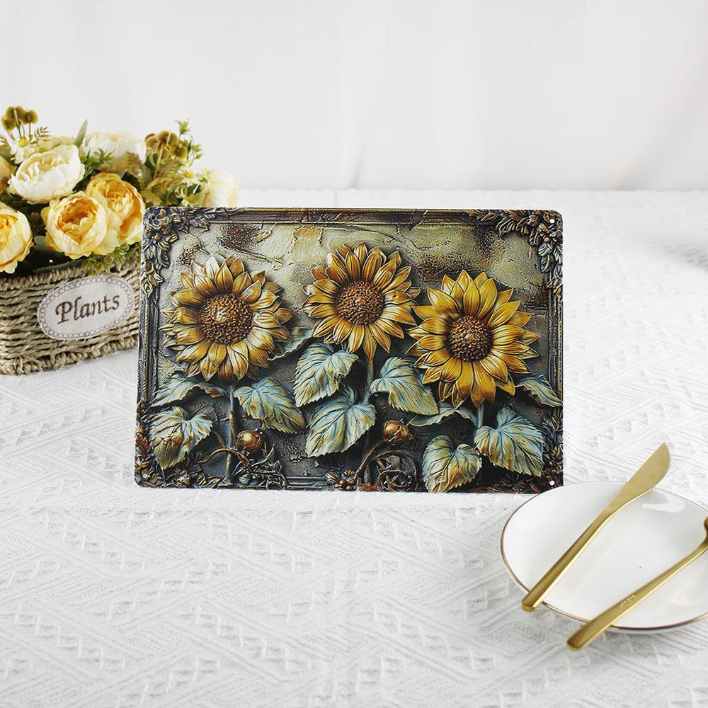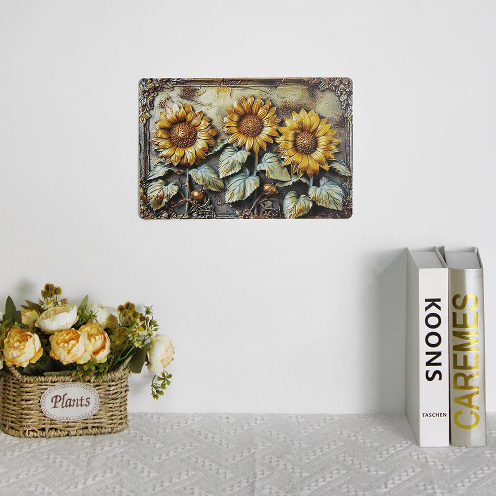 Ретро-американский стиль Подсолнух Настенное украшение Железная картина для кухни, спальни, сада, подвесная картина из железа