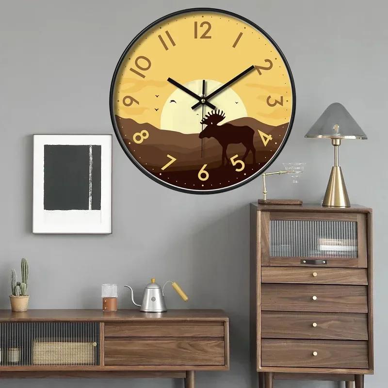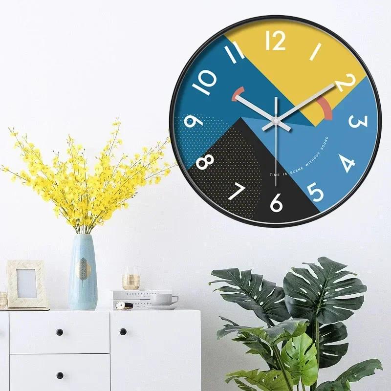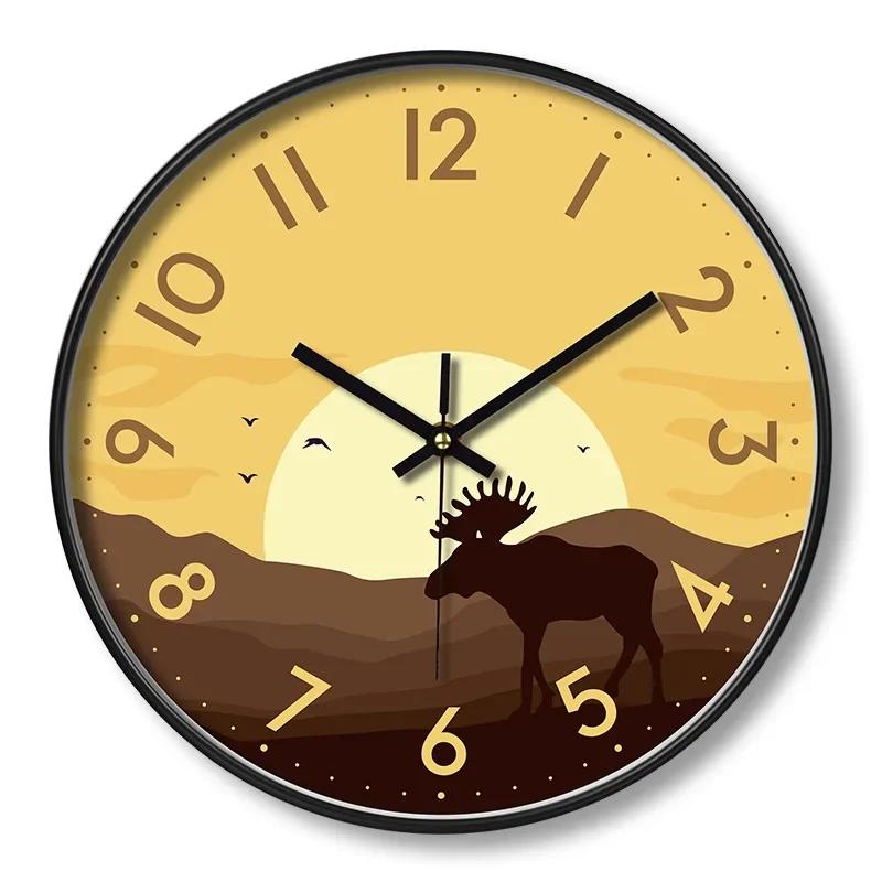 Настенные часы в художественном стиле с ночником, светящиеся в темноте, кварцевые настенные часы, не тикающие, для домашнего офиса, отелей, магазинов, декора для кафе
