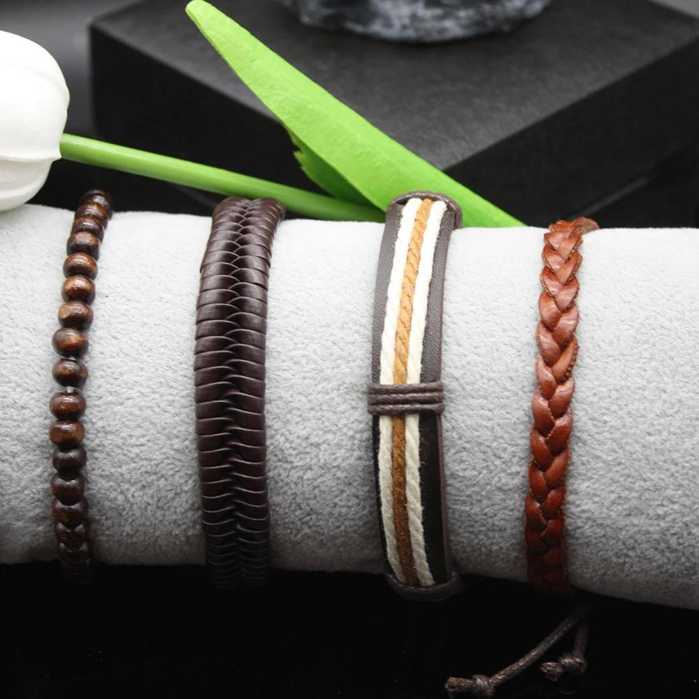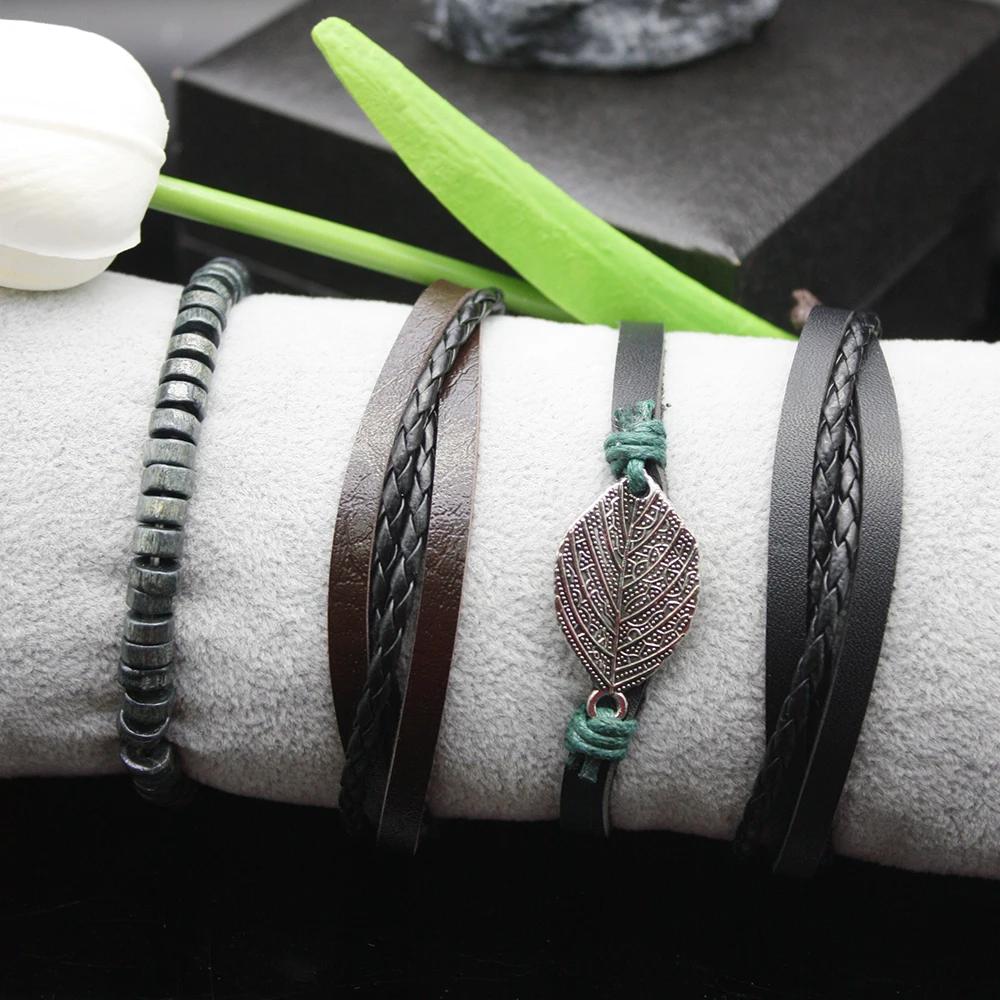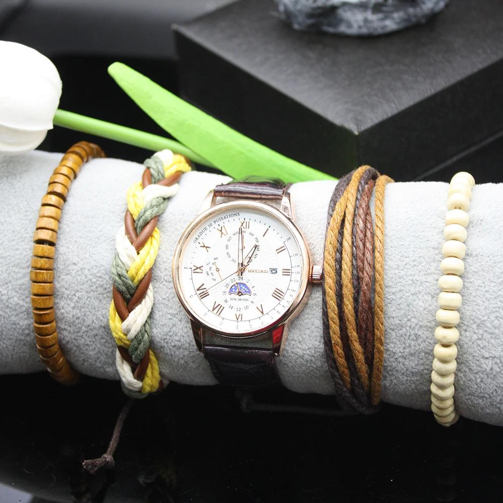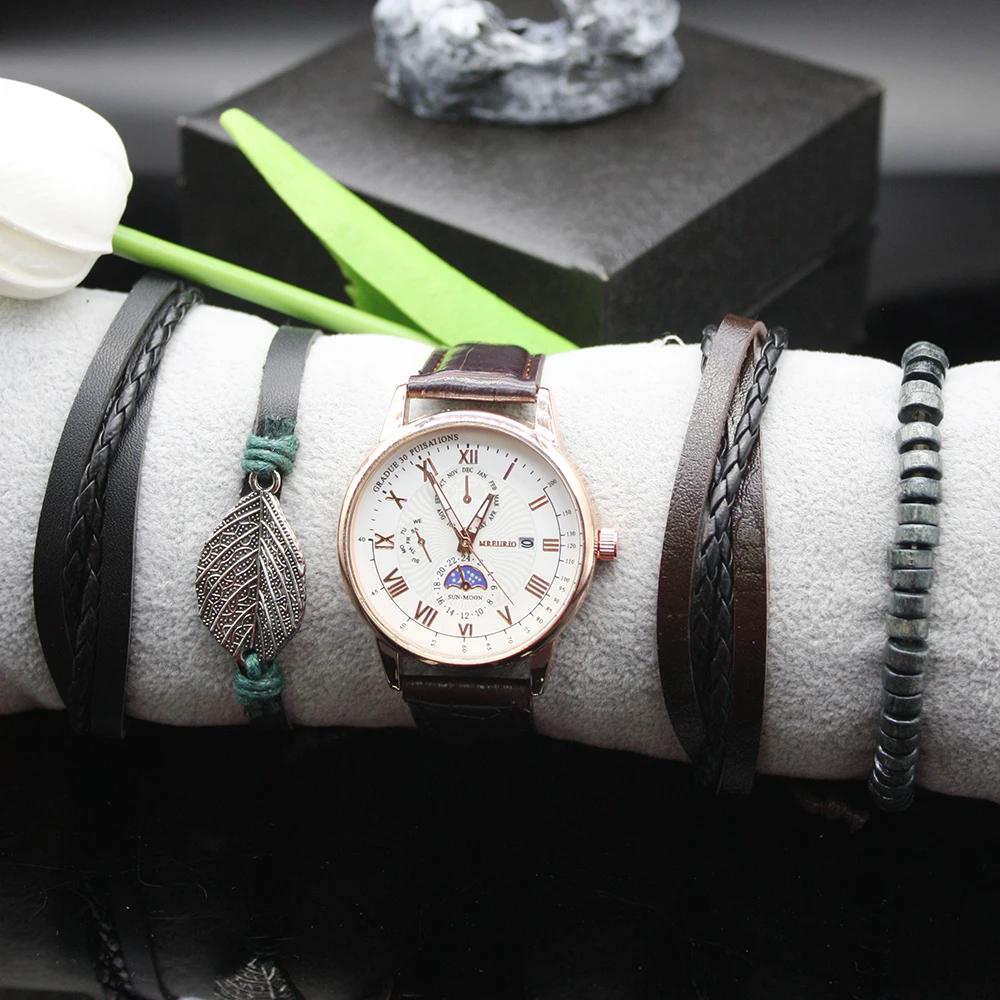 Набор из 5 штук Автоматические часы для мужчин Модные Изысканные Кожаный Ретро Ремешок Включает Браслеты Подарочная Коробка для Праздника