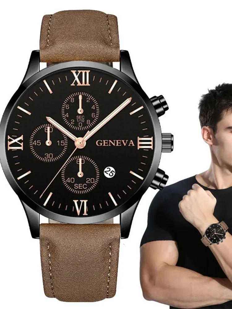 Новые модные повседневные спортивные кварцевые часы Geneva с кожаным ремешком и календарем на ремне, водонепроницаемые часы для отдыха на открытом воздухе, занятий спортом, бега