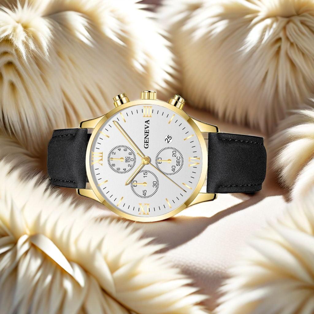 Простые кожаные наручные часы с ремешком, дата, корпус из сплава, аналоговый кварцевый механизм, спортивные, три стрелки, часы с высокой читаемостью для спорта, бега на открытом воздухе