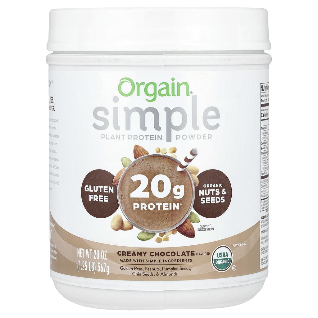 Orgain, Simple, растительный протеиновый порошок, сливочный шоколад, 1,25 фунта (567 г)
