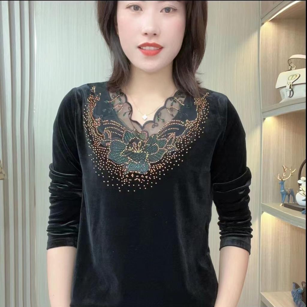Осенняя новая темпераментная рубашка из золотистого бархата для мам, футболка для женщин среднего и пожилого возраста на весну и осень с кружевным топом в иностранном стиле — купить товар онлайн с бесплатной доставкой до всему миру!
