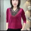 Осенняя новая темпераментная рубашка из золотистого бархата для мам, футболка для женщин среднего и пожилого возраста на весну и осень с кружевным топом в иностранном стиле