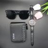 Набор из 3 предметов, мужские часы, кошелек для карт, очки для глаз, стильный кошелек для мужчин, ретро-мода для отпуска, спорта