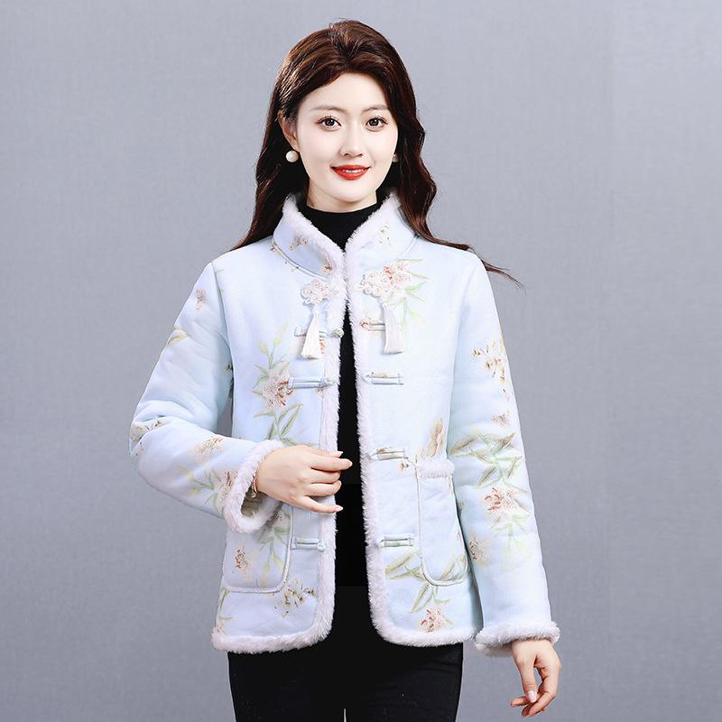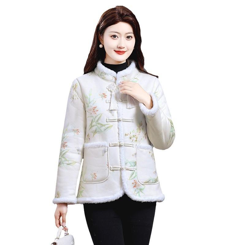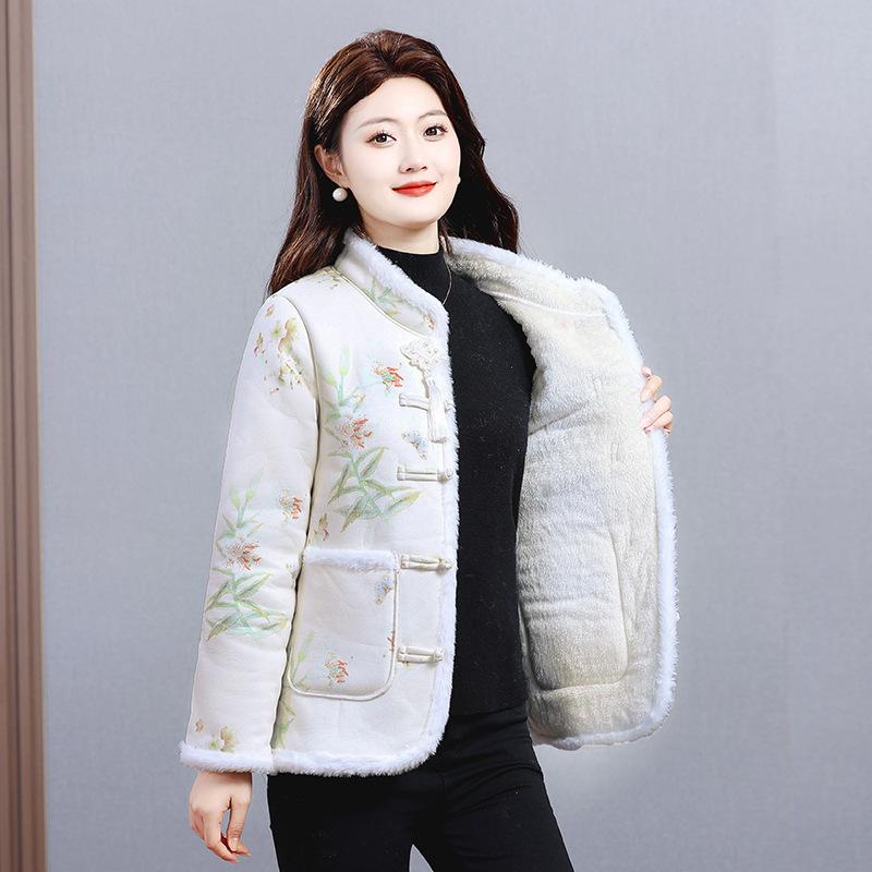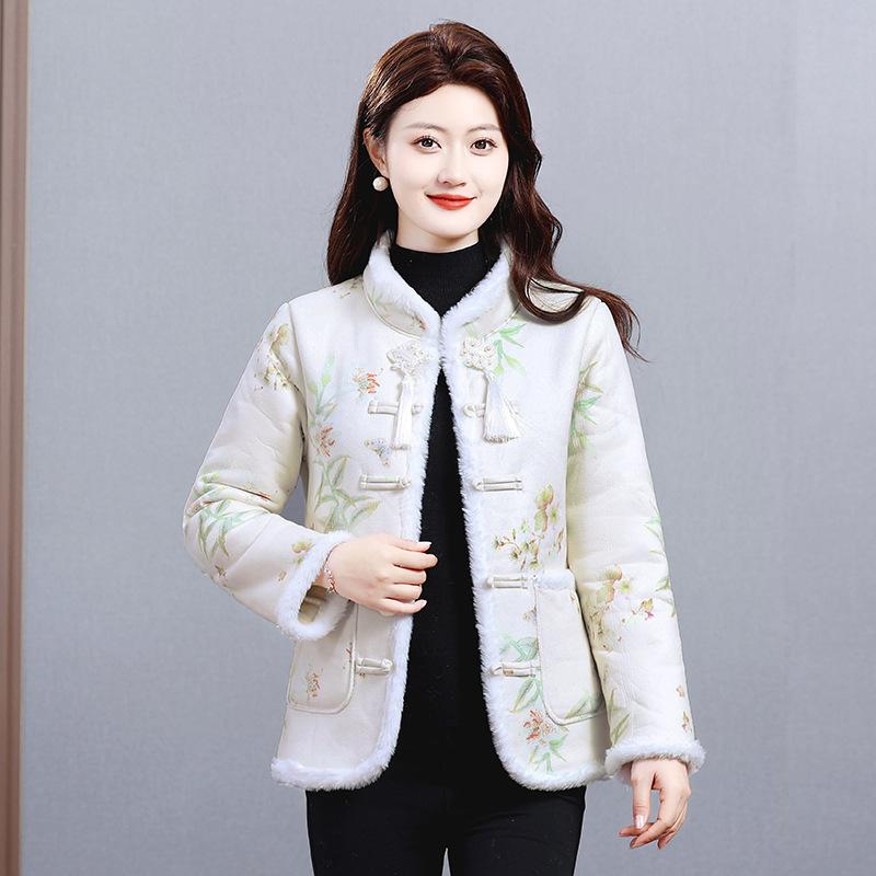 Флисовая одежда для женщин среднего возраста, матерей, этнический стиль, иностранный стиль, теплая, популярная куртка с хлопковой подкладкой
