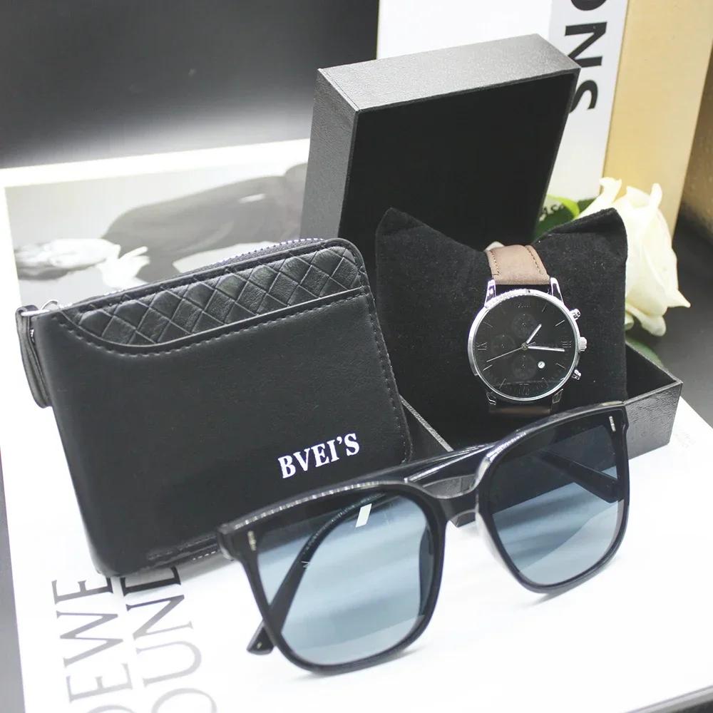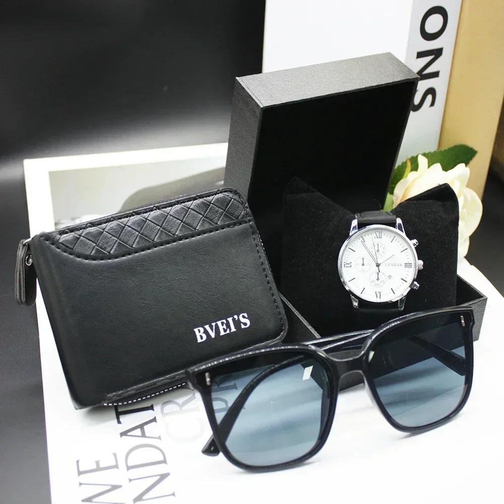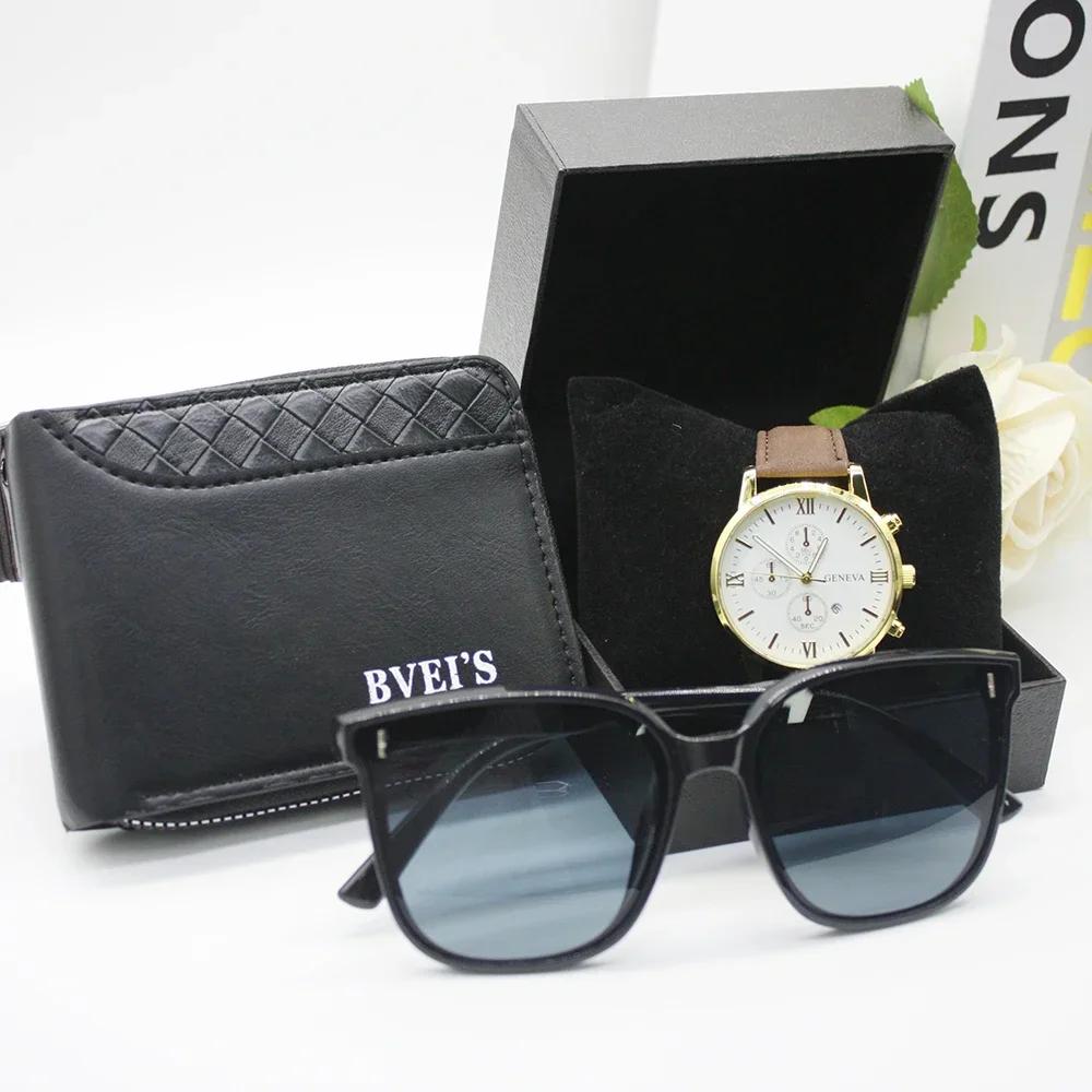 Набор из 4 предметов, мужские роскошные часы, кошелек, мужские кошельки, роскошная брендовая дизайнерская сумка для мужчин, в комплект входит браслет, коробка для работы и спорта