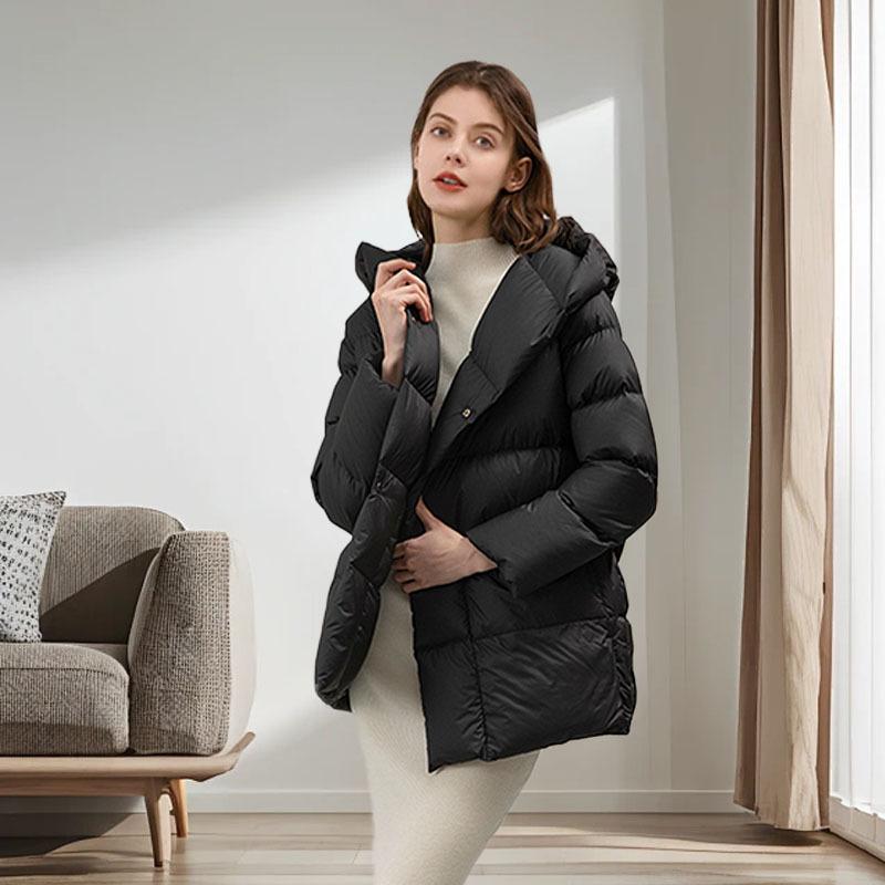 Пуховик женский средний и длинный 2024 новая зимняя женская одежда в стиле Цзяннань простая теплая куртка на утином пуху — купить товар онлайн с бесплатной доставкой до всему миру!