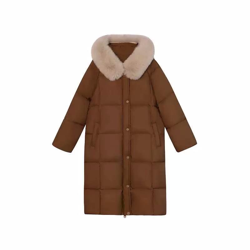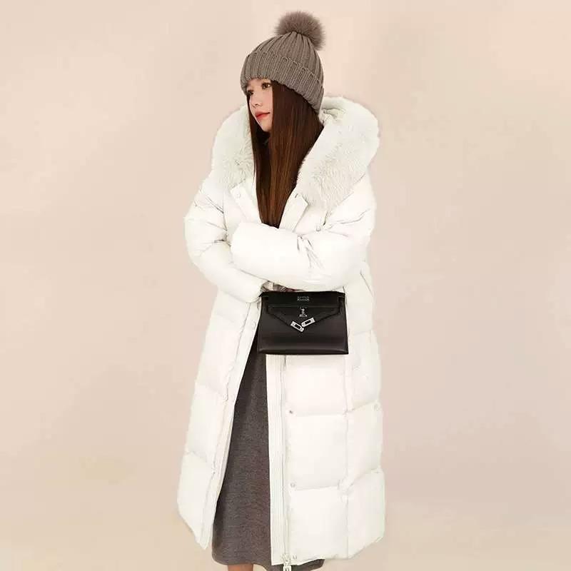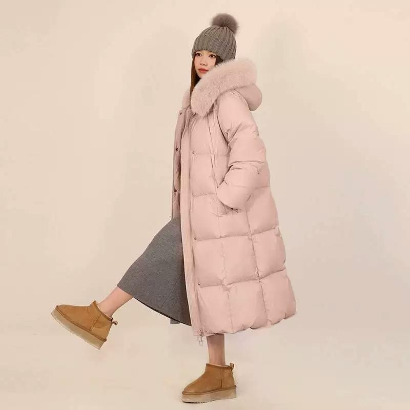 Пуховик женский средний и длинный 2024 зима новая корейская версия мода свободный выше колена утолщенный капюшон большой меховой воротник куртка