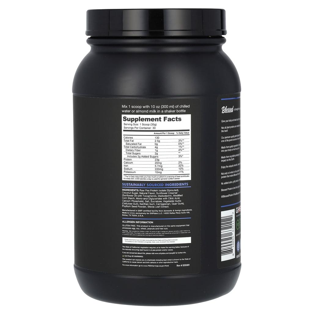 Ингредиенты: Необработанный изолят горохового белка (проросший), кокосовый сахар, натуральный ароматизатор, подсолнечный кример (подсолнечное масло, содержащее токоферол, мальтодекстрин, модифицированный кукурузный крахмал, моно- и диглицериды, содержащие лимонную кислоту, фосфат кальция), соль, сук. Ралоза, растительная камедь (целлюлозная камедь, ксантановая камедь, каррагинан, гуаровая камедь), порошок семян подорожника, экстракт листьев стевии. Произведено в соответствии с надлежащей производственной практикой (GMP) сертифицированное предприятие в Соединенных Штатах. Информация об аллергенах: Этот продукт производится и изготавливается на предприятии, где перерабатываются яйца, соя, пшеница, арахис и продукты, содержащие древесные орехи.