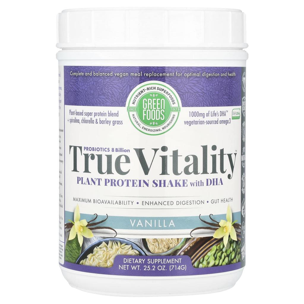 Green Foods, True Vitality, растительный протеиновый коктейль с DHA, ваниль, 25,2 унции (714 г) — купить товар онлайн с бесплатной доставкой до всему миру!