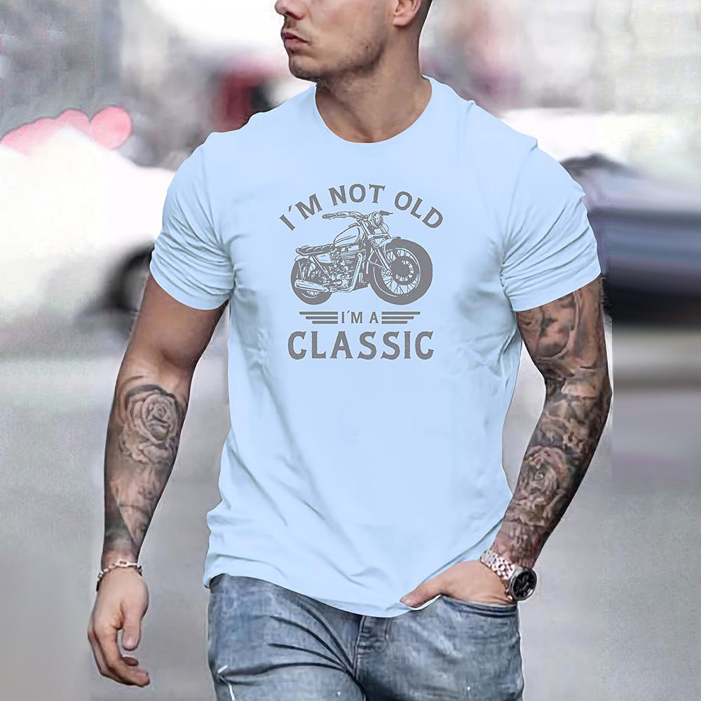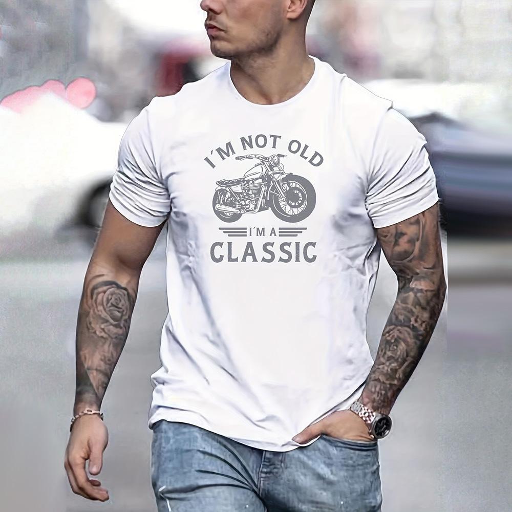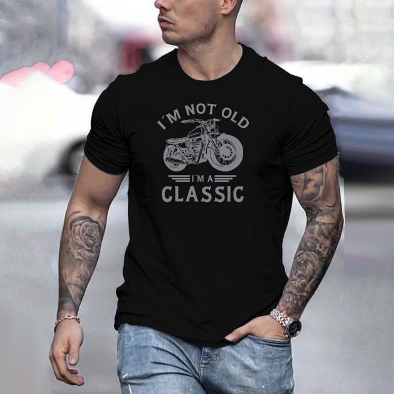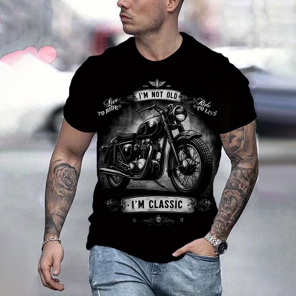 Футболка с графическим принтом в стиле винтажного мотоцикла, классическая футболка с короткими рукавами и принтом в виде букв I'm Not Old, повседневная мужская одежда больших размеров 2024 года