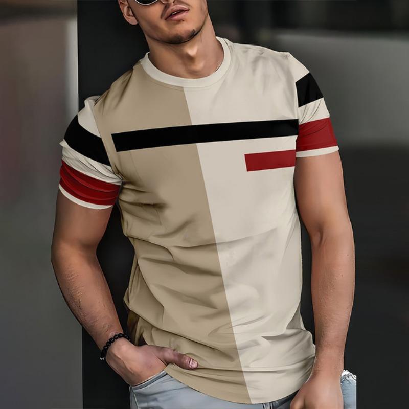 Модная полосатая принтованная одежда с коротким рукавом 2025 года, повседневная мужская одежда, простая свободная мужская футболка, верхняя часть, мягкая дышащая мужская одежда