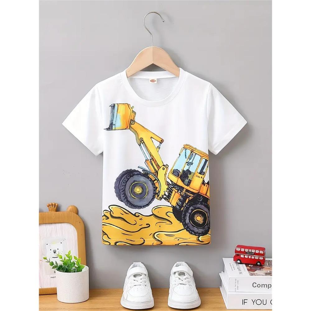 Детская футболка Детская одежда Футболки с рисунком экскаватора Футболки с коротким рукавом Летняя одежда для мальчиков Одежда с круглым вырезом для малышей