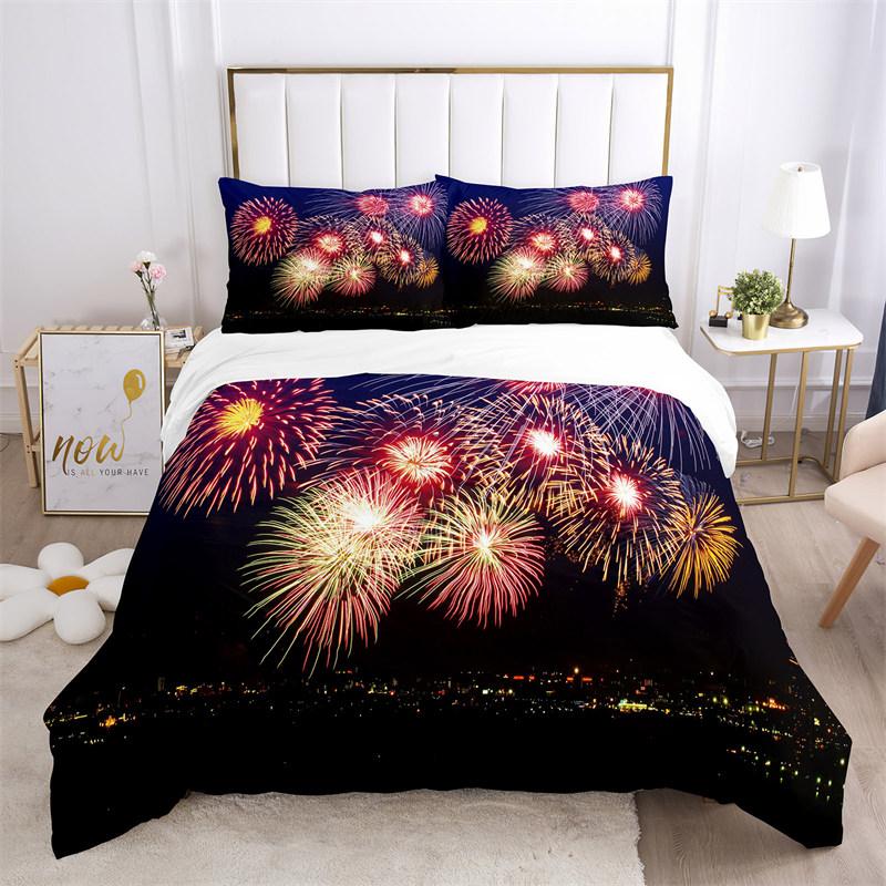 Комплект постельного белья с фейерверками, разноцветные огни, пододеяльник, празднование Рождества, тематическое одеяло, королева, для взрослых, подростков, детей, декор