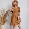 Летние свободные однотонные женские повседневные платья с коротким рукавом, модное винтажное элегантное сексуальное платье с баской, женское свободное платье с оборками на талии 25924