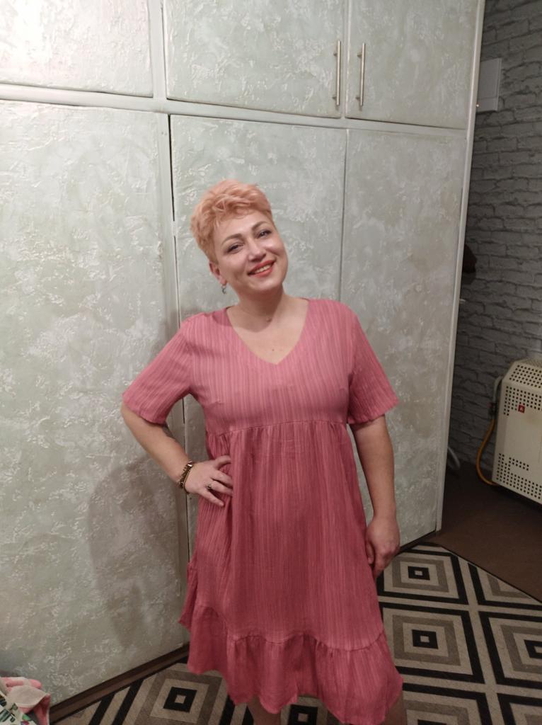 Всём привет👋 отличное платье. Полностью соответствует описанию продавца. Смотрите моё видео. Выполнено аккуратно. Всё швы ровные. Нитки не торчат. Без каких либо изъянов и запаха. Материал не светит. Отличный фасон. Скрывает изъяны фигуры. Снизу волан. Мои параметры 102, 84, 108. Рост 163 см. На мне размер XL. Село отлично. Можно и на размер меньше. Но мне хотелось посвободнее. Товаром довольна. Очень понравился цвет. Заходите в магазин, большой выбор одежды. Рекомендую вам данный товар и магазин. А с вами Ксю и до следующего обзора 🥰