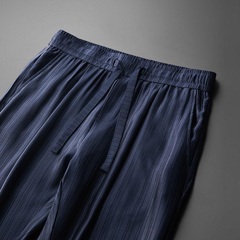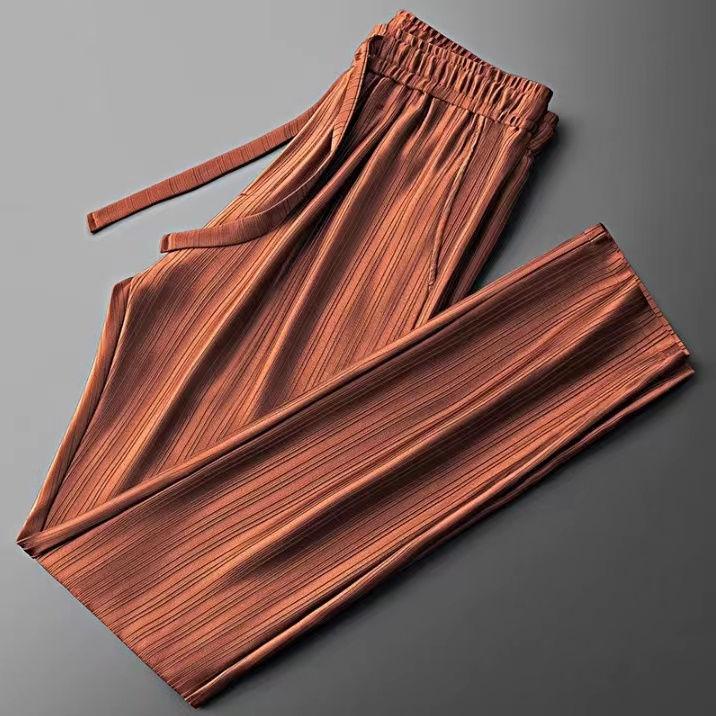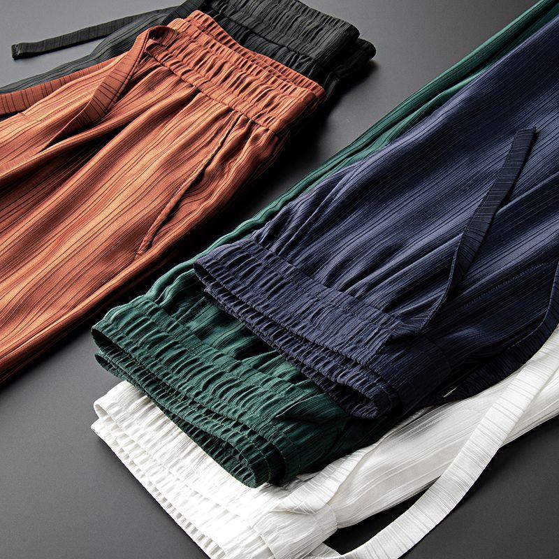 Дышащие плиссированные свободные и удобные летние тонкие мужские прямые широкие повседневные брюки из триацетата