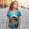 Футболка для девочек с принтом в виде милого кота на 3D-принте, детская одежда, футболка для малышей, летняя повседневная футболка с коротким рукавом
