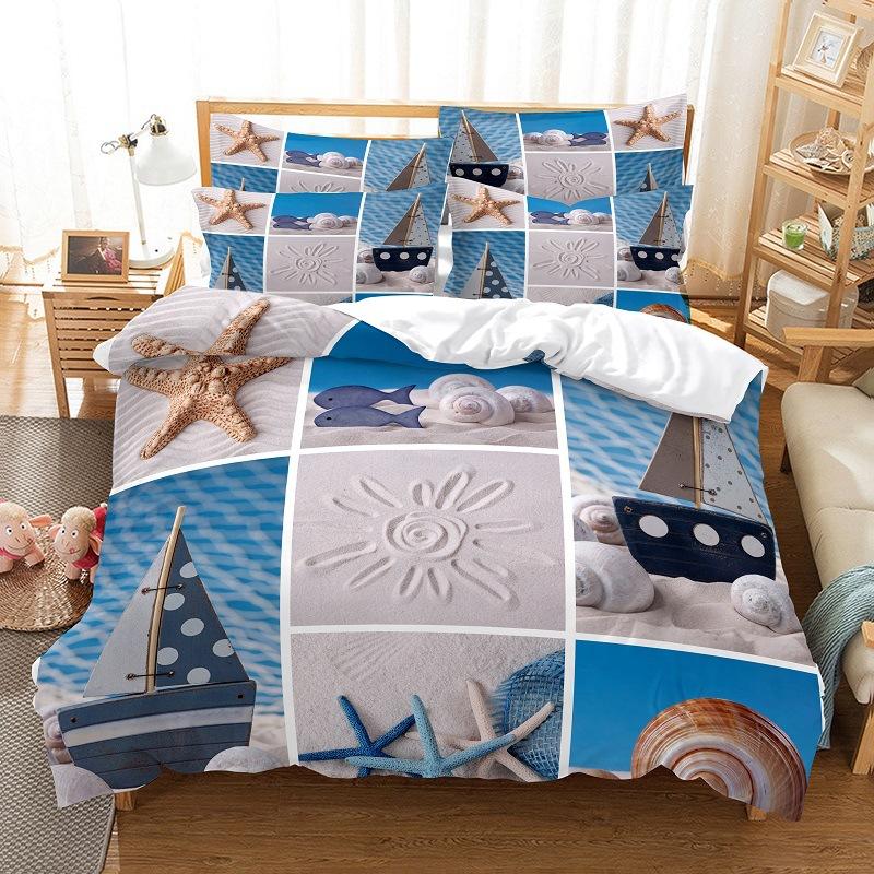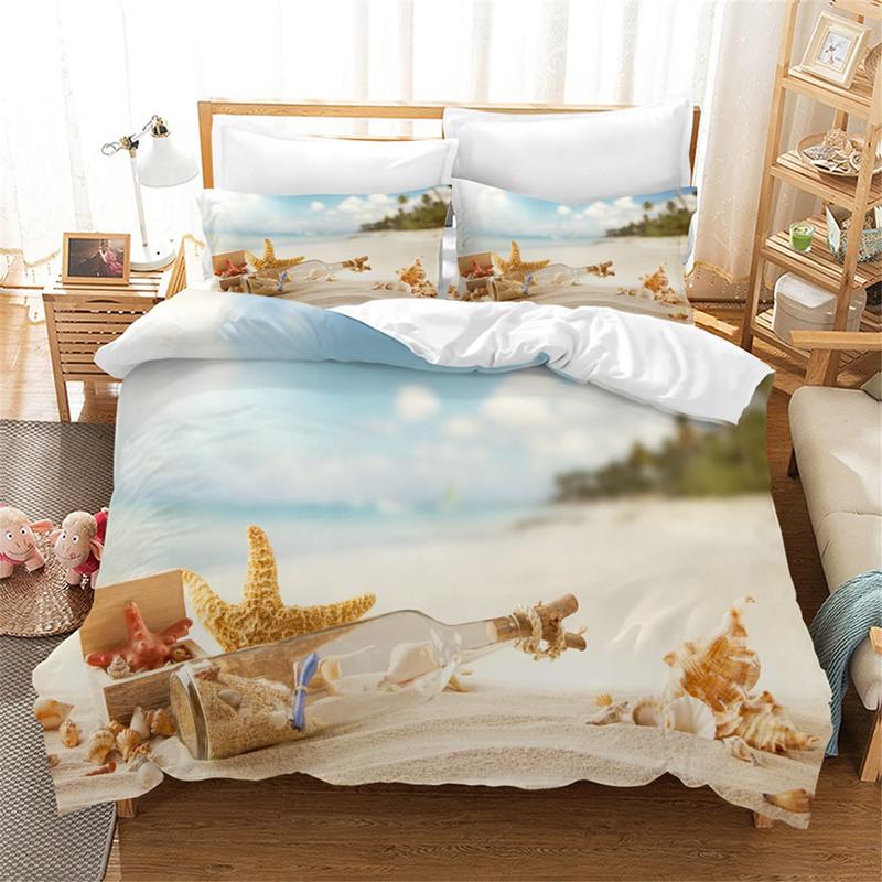 Пододеяльник с изображением морской звезды из микрофибры, комплект постельного белья с изображением морских существ и ракушек, односпальный, размера «king-size»
