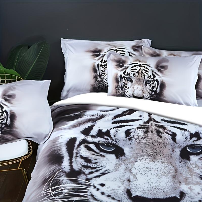 Комплект постельного белья из 3 предметов «Белый тигр» — пододеяльник и наволочки с ярким HD-принтом, мягкие и уютные — идеально подходят для спальни, гостевой комнаты
