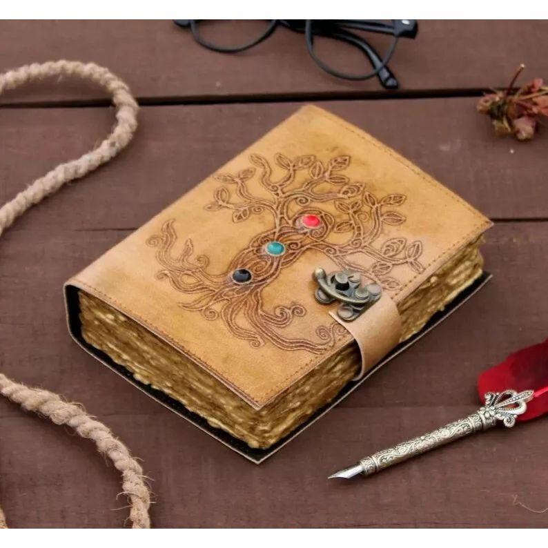 ● ВИНТАЖНЫЙ ЗАМОК И ПРОЧНЫЙ переплет. Винтажный замок сохранит все ваши ценные записи внутри. Прочный переплет, прошитый вручную, гарантирует, что ни одна бумага не выпадет из вашего старинного блокнота.