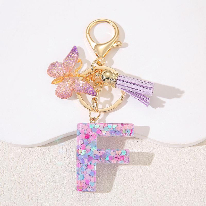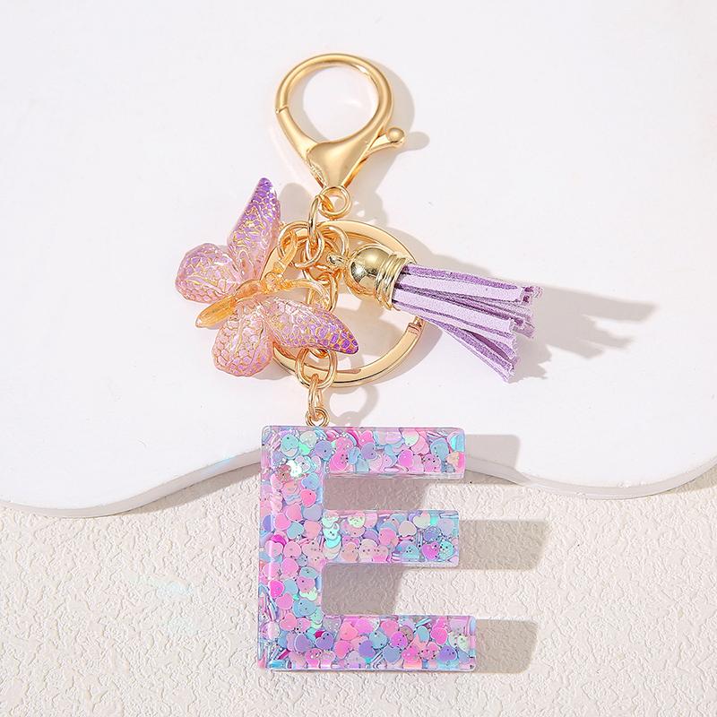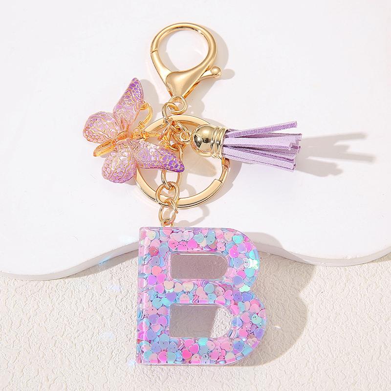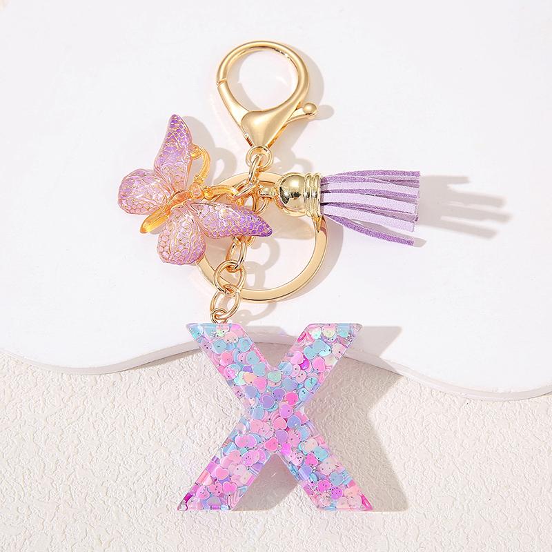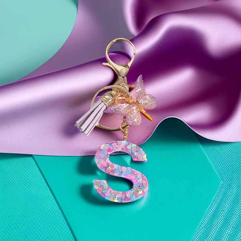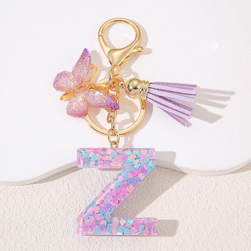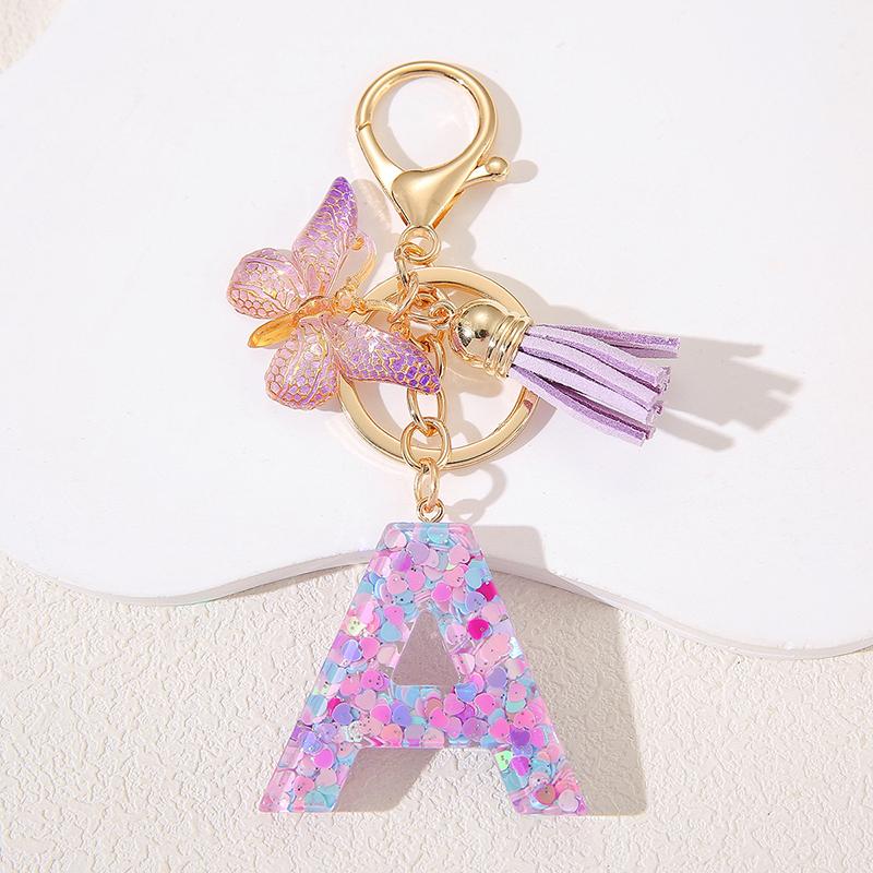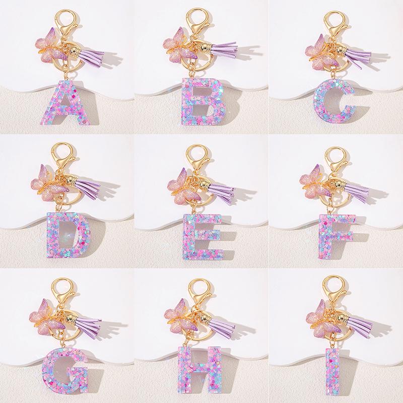 A To Z Фиолетовые звезды заполнены буква брелок 26 инициалов алфавит бабочка кисточка подвески брелоки сумка украшение автомобиль брелок подарок
