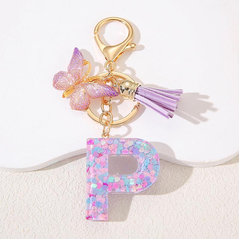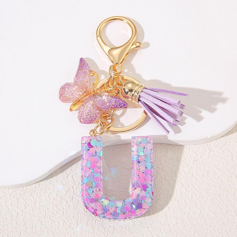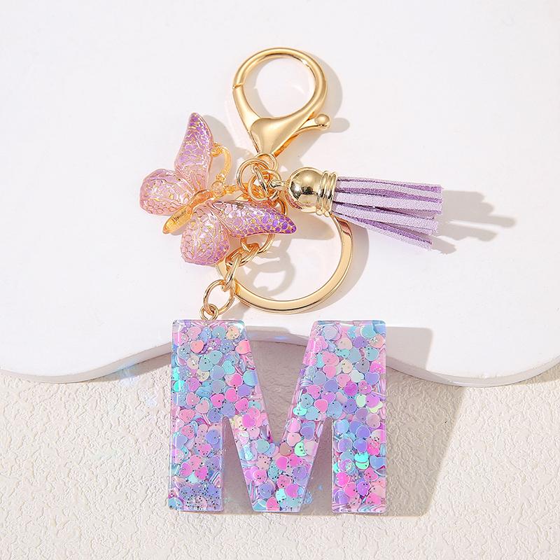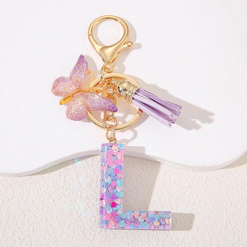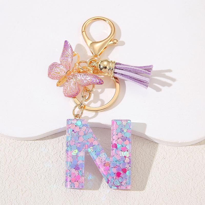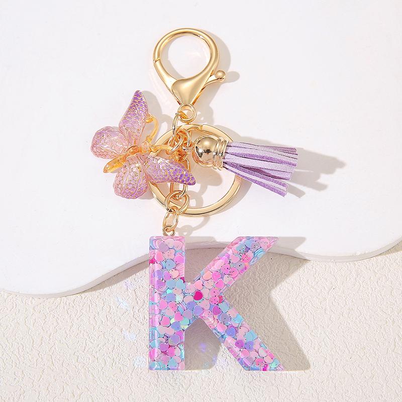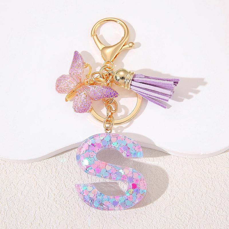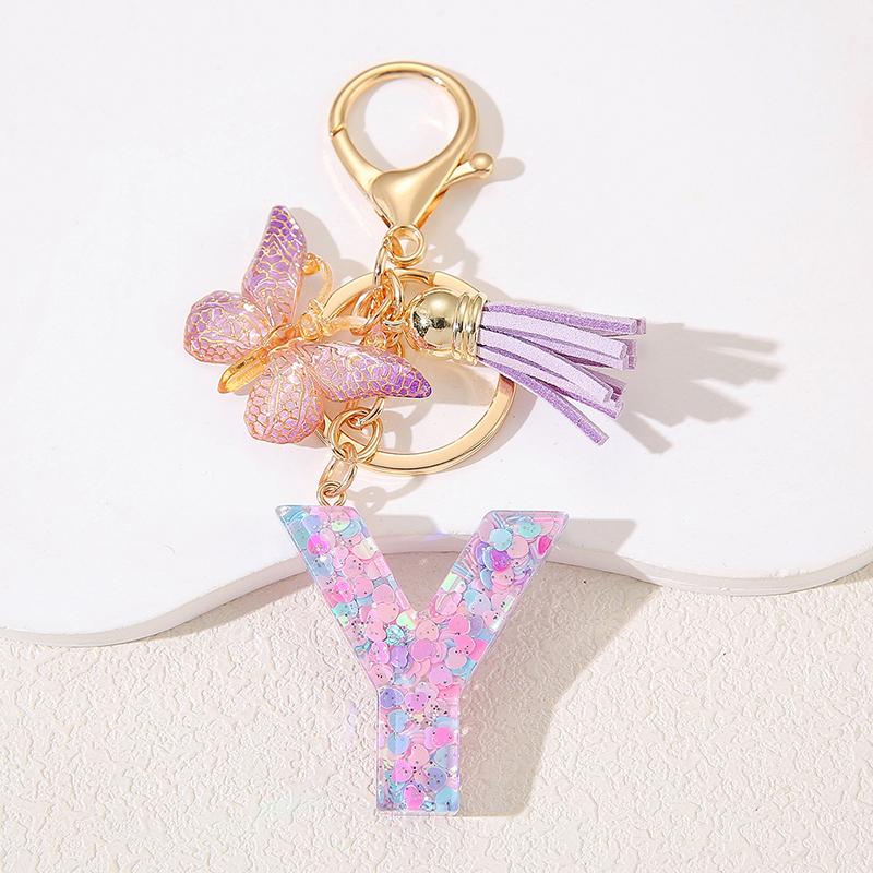 A To Z Фиолетовые звезды заполнены буква брелок 26 инициалов алфавит бабочка кисточка подвески брелоки сумка украшение автомобиль брелок подарок