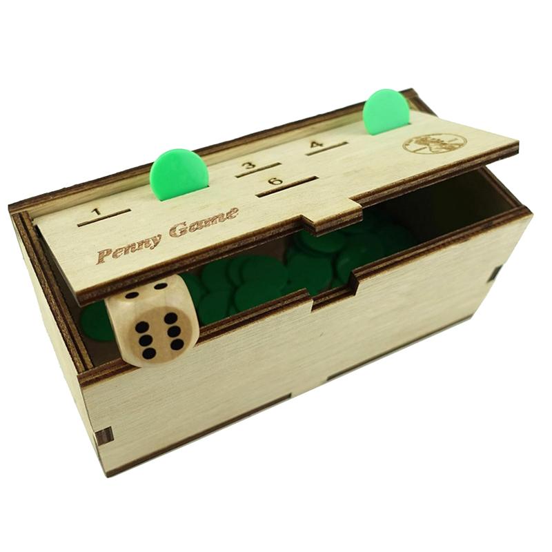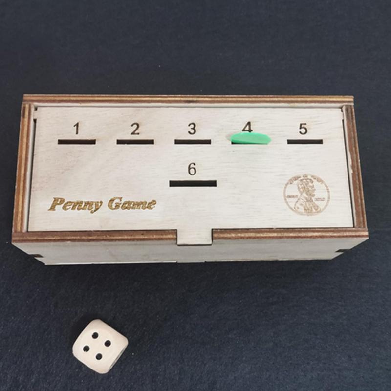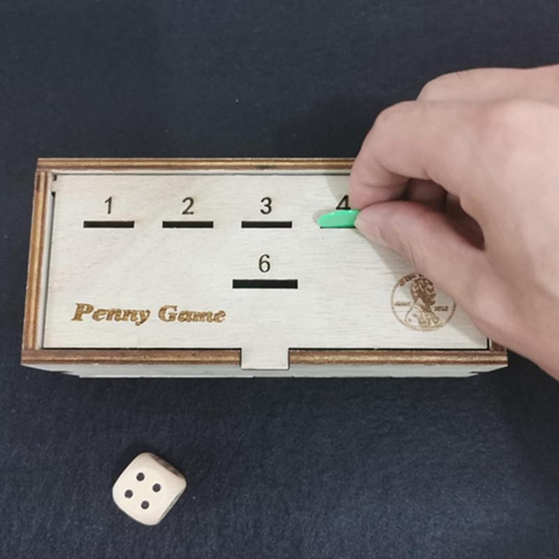Игра в пенни. Веселая настольная игра. Работает с пенни. Избавьтесь от монет, чтобы выиграть. Игра в монеты. Деревянная коробка для 2–6 игроков. Простая + стратегические игральные кости.