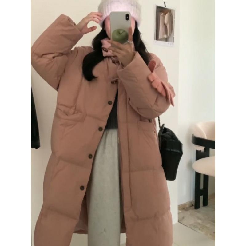 Дизайнерская куртка-пуховик женская длинная 2024 новая корейская версия воротник-стойка высококачественная роговая пряжка пуховик — купить товар онлайн с бесплатной доставкой до всему миру!