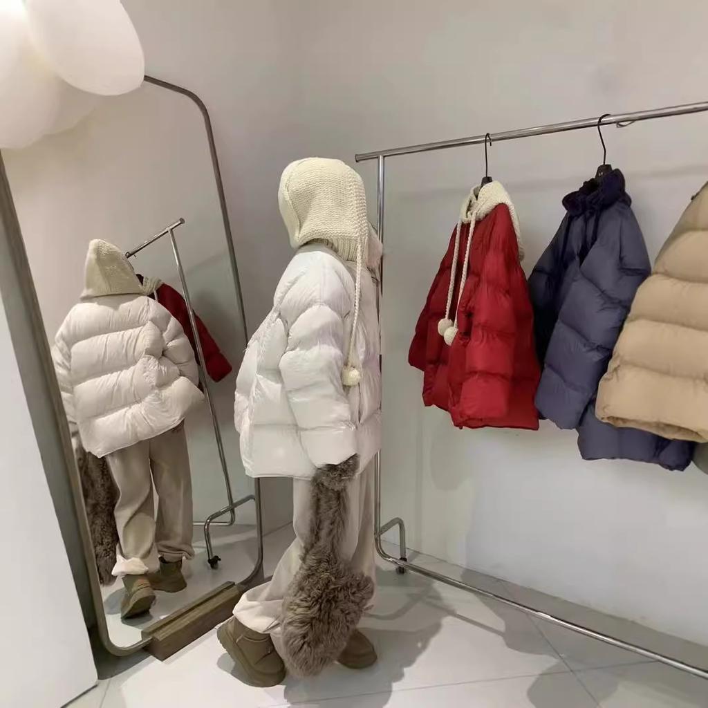 Зимняя рождественская красная куртка-пуховик 2024 года средней и длинной толщины 90% со съемной шапкой из белой утиной шерсти