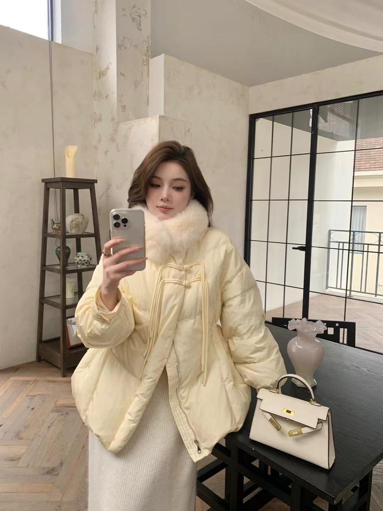 2024 зима новый воротник из лисьего меха пуховик женский средний и длинный белый утиный пуховик прилив