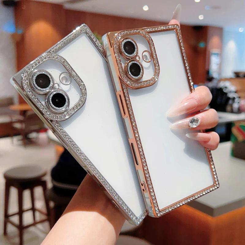 Прозрачный чехол с алмазным покрытием для iPhone 16 Pro Max 15 Plus 14 13 Pro, мягкий силиконовый защитный противоударный чехол для линз — купить товар онлайн с бесплатной доставкой по всему миру!