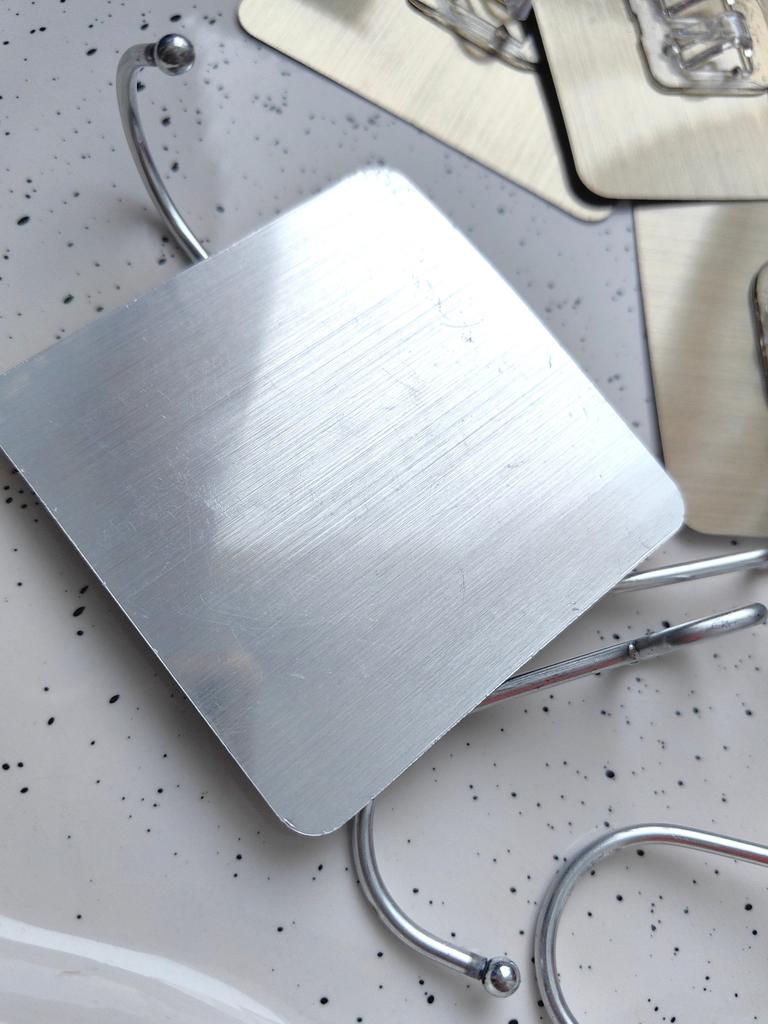 Самоклеящиеся крючки Очень классные! Простые, легкие в использовании. Тоненькая основа. Держат крепко , прилегают плотно. Не отклеиваются от тяжести. Я в восторге! Можно выбрать прозрачную самоклейку или как у меня в металлическом цвете . Рекомендую!
