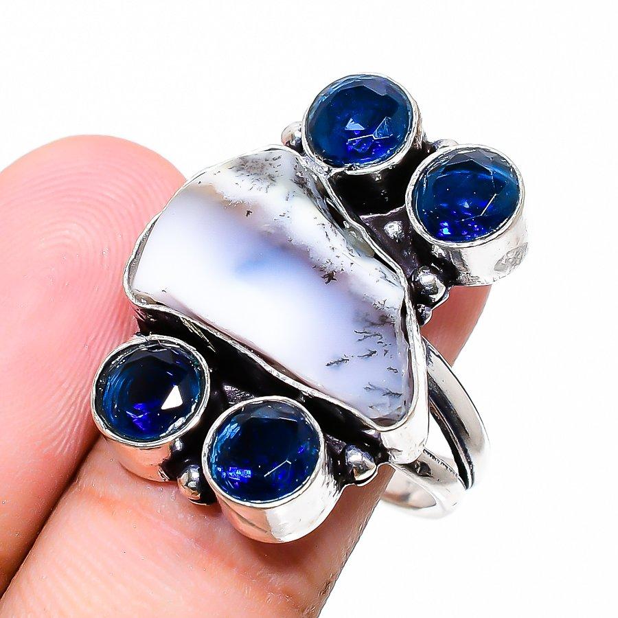 Необработанный опал дендрита, топаз, ювелирное кольцо из стерлингового серебра 925 пробы, размер 8 B4G55