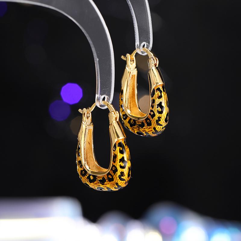 Осень и зима новые леопардовый принт геометрические серьги-пряжки ретро темперамент модный простой дизайн холодный ветер серьги