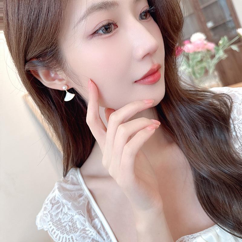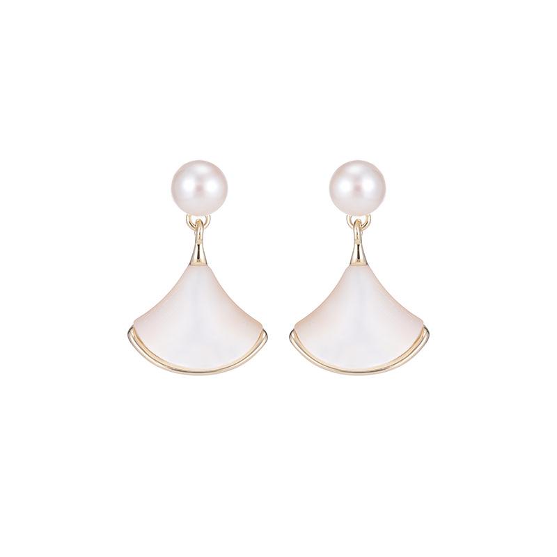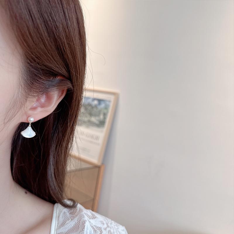 Новые серьги-иглы из натурального белого рябчика в форме веера из серебра 925 пробы, стильные серьги-гвоздики для маленькой юбки