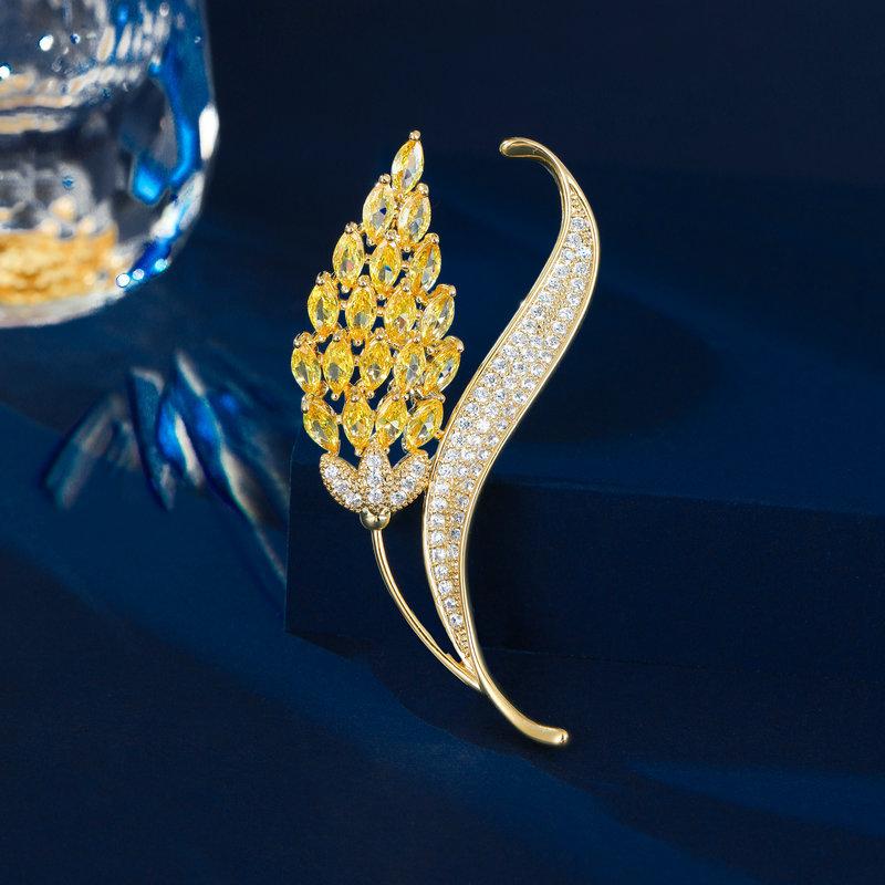 Новые высококачественные аксессуары для корсажа, инкрустированные цирконами, изысканная многофункциональная фиксированная булавка, золотая брошь в виде колоска пшеницы