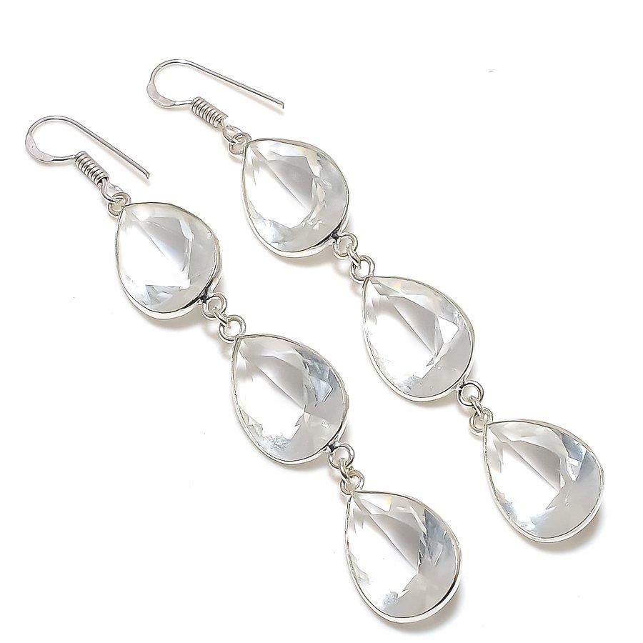 Белый топаз ручной работы ювелирное изделие из стерлингового серебра 925 серьга 3,55" E5Y21