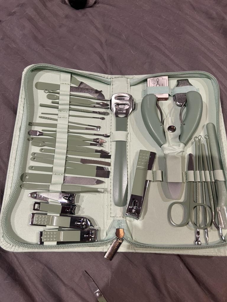 Набор компактный все металическое острое. Хорошего качества. То что нужно с собой всегда в сумочку.