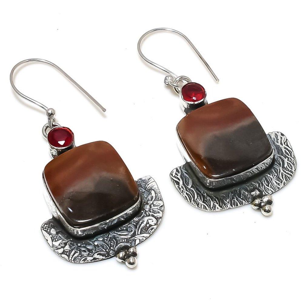 Mookaite, Garnet Handmade 925 Sterling Silver Gift Earring 2.17" a2L49