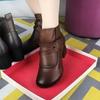 Женские сапоги Новые британские сапоги в ретро-стиле Однотонные сапоги на высоком каблуке Ботильоны на молнии Круглые сапоги Botas Mujer