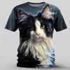 Милая мультяшная кошка с графическим 3D-принтом, одежда с коротким рукавом, весна 2025, новая мужская футболка с круглым вырезом, повседневная уличная мужская одежда