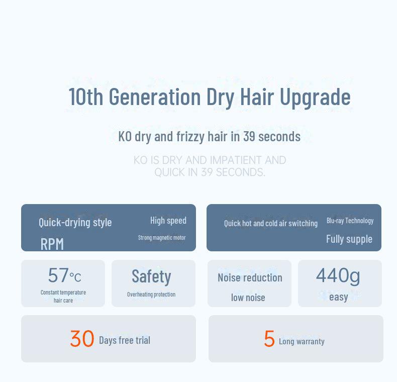 Доступный фен: Интеллектуальная постоянная температура для быстрой сушки и быстрого переключения горячего/холодного воздуха для укладки волос